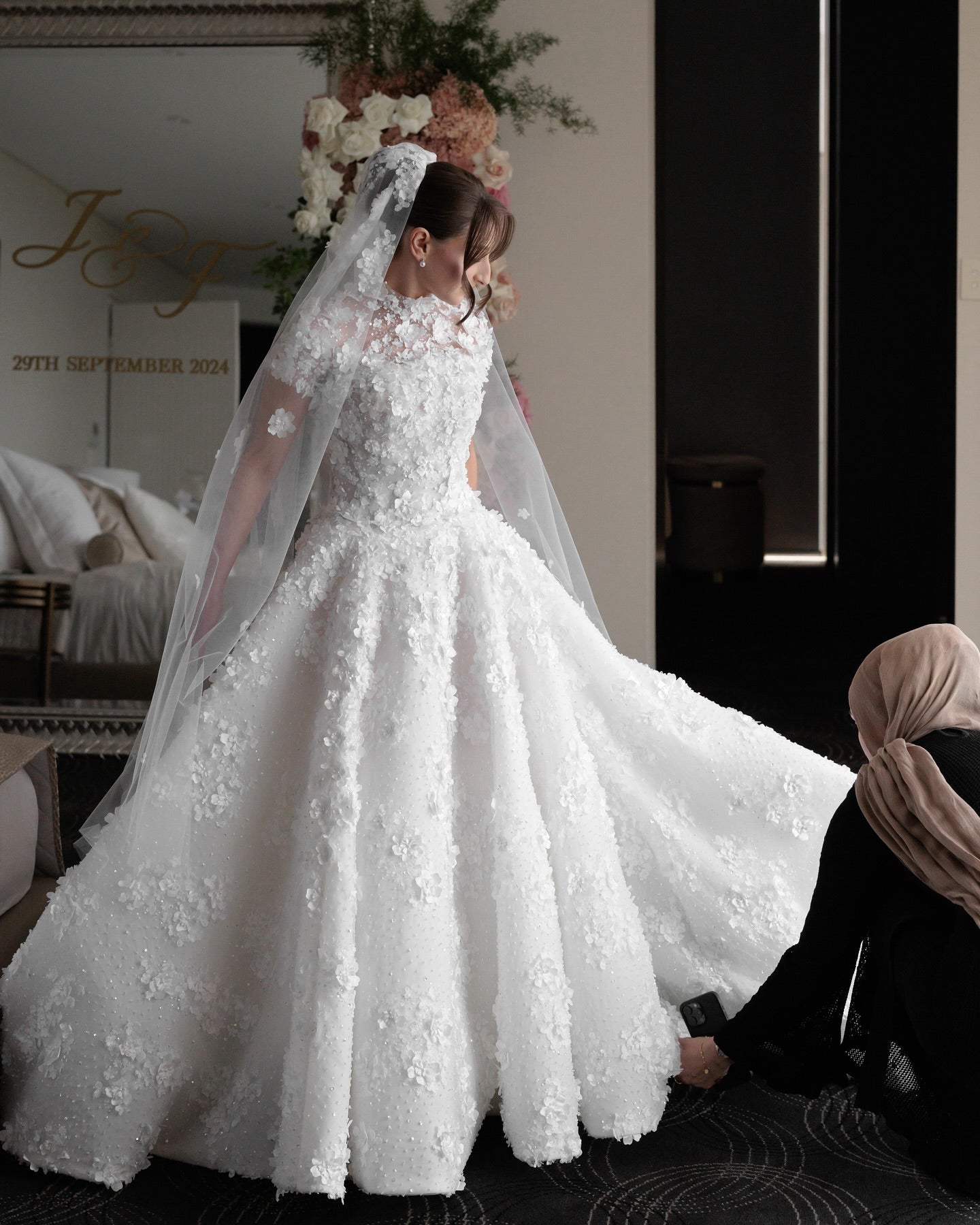 Make your walk down the aisle unforgettable with our Premier Gown & Veil — the perfect harmony of tailored beauty and soft, romantic detail. Designed for brides who seek elegance in every stitch.
